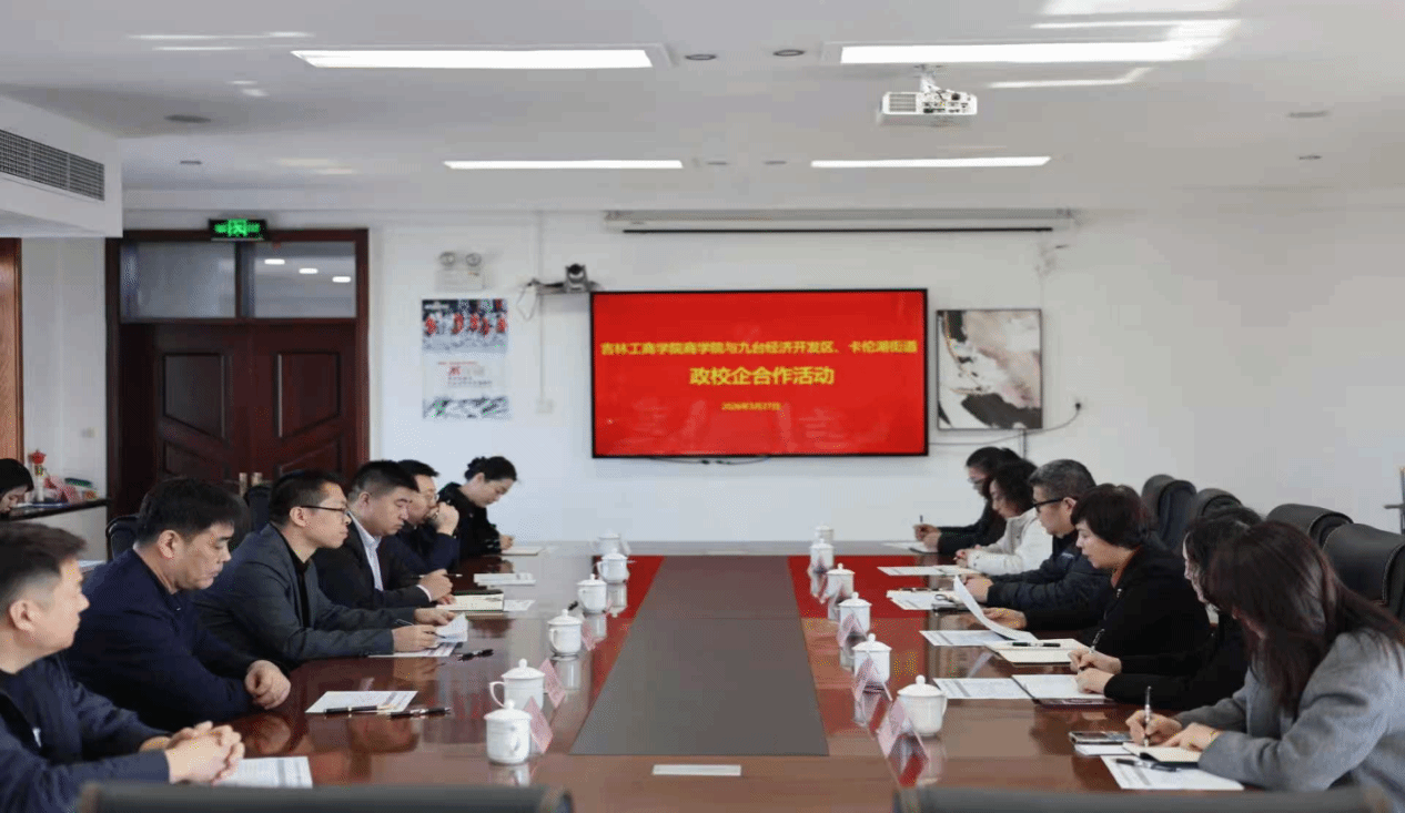 为深化产教融合、推动校地企协同发展,精准对接地方经济发展需求,3月27日,吉林工商学院商学院党委书记杨飞、院长李叔宁带队赴长春市九台经济开发区卡伦湖街道开展校地合作活动。卡伦湖街道党工委书记白超、副主任顾建刚,九台经济开发区管委会副主任孙梓恒及辖区内长春朱老六食品有限公司、吉林省博旺农业有限公司等重点企业代表出席会议。