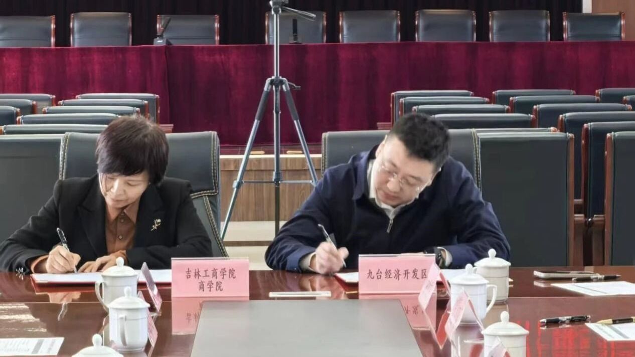 随后,商学院与九台经济开发区、卡伦街道分别签署了战略合作协议。