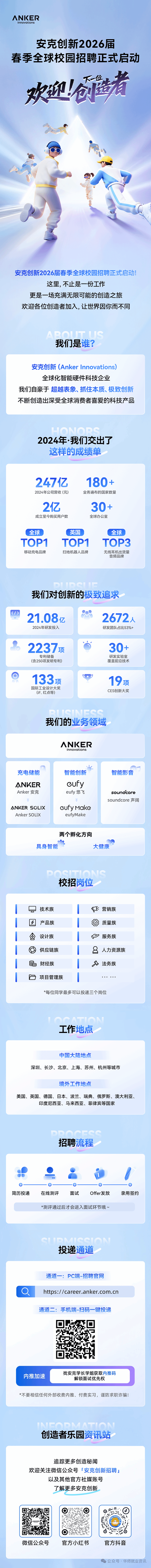 安克创新2026届春季校园招聘启动