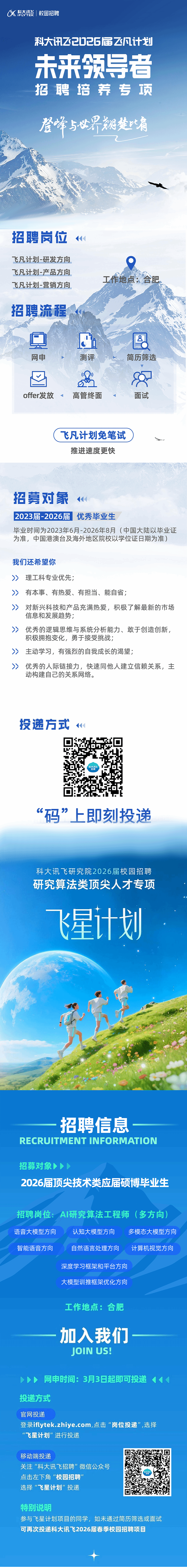 科大讯飞2026届飞凡计划&飞星计划春招正式启动!