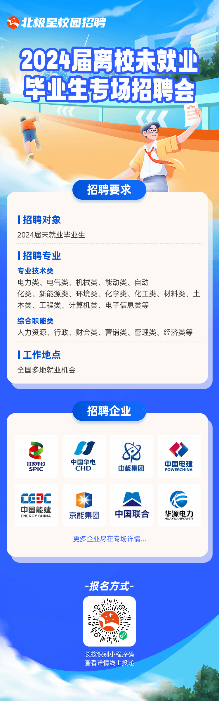 【招聘专业】电力类、电气类、机械类、能动类、自动化类、新能源类、环境类、化学类、化工类、材料类、土木类、工程类、计算机类、电子信息类、人力资源、行政、财会类、营销类、管理类、经济类等相关专业