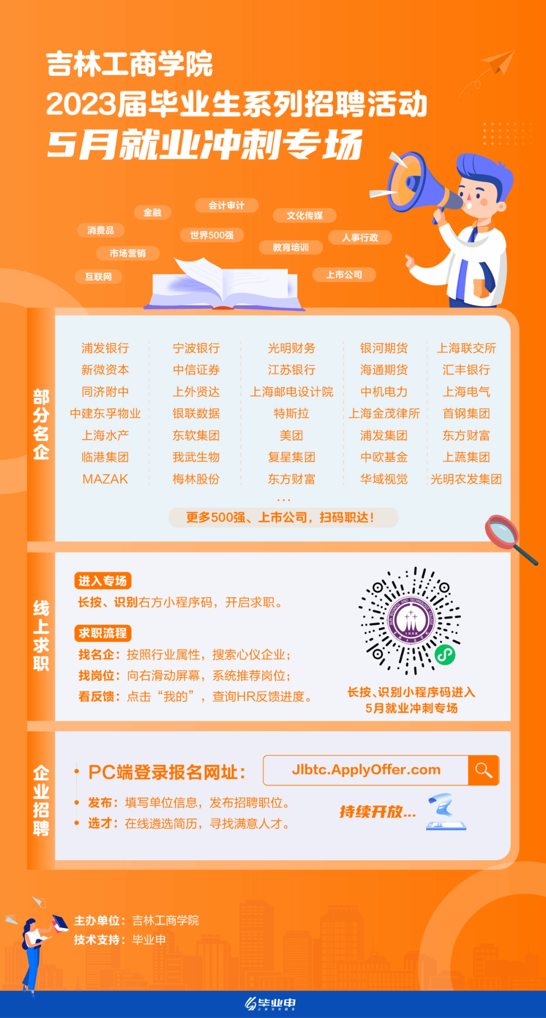为贯彻落实教育部关于2023届毕业生就业工作的总体部署,深入开展就业育人工作,持续推进毕业生与用人单位精准供需对接,为我校毕业生高质量就业拓宽渠道,现决定举办5月就业冲刺专场招聘活动。