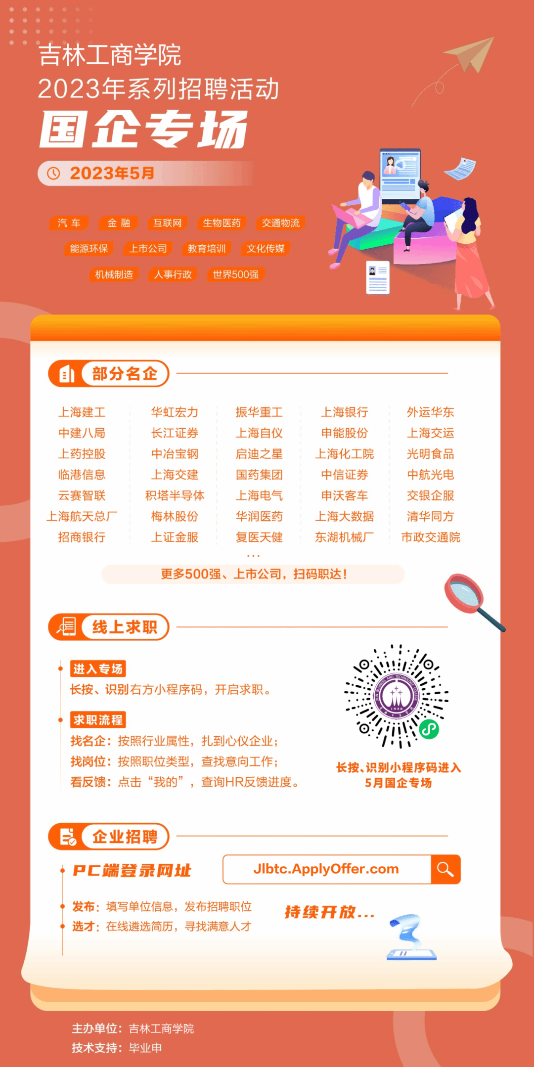 为贯彻落实教育部关于2023届毕业生就业工作的总体部署,深入开展就业育人工作,持续推进毕业生与用人单位精准供需对接,为我校毕业生高质量就业拓宽渠道,现决定举办专场招聘活动。